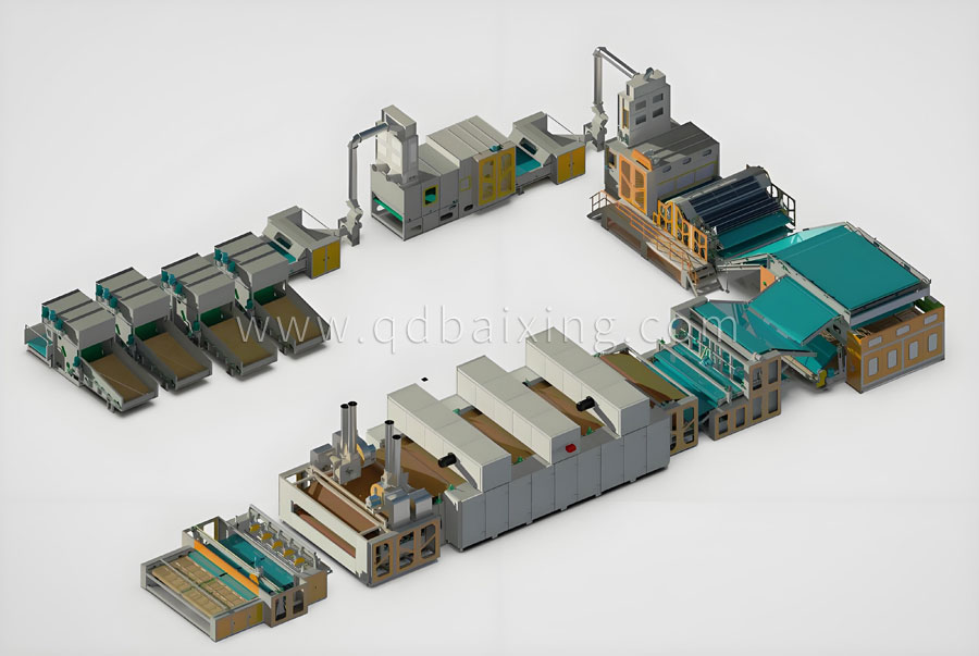 喂棉箱是干法成網無紡布生產線中的關鍵單元機之一,其主要作用是將充分開松混合后的纖維處理成均勻的筳棉,送入下道成網設備(梳理機或氣流成網機)